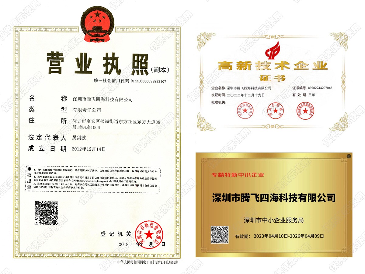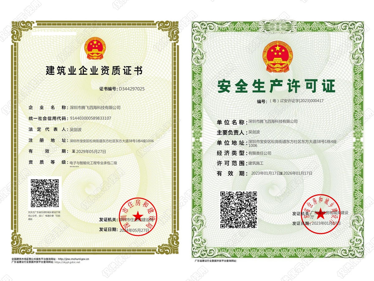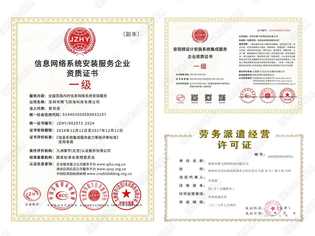 深圳市騰飛四??萍加邢薰境闪⒂?005年,注冊資金5000萬元。?總部位于深圳市寶安區(qū)松崗街道東方大道38號1棟4座1006。是一家擁有自主知識產(chǎn)權(quán)的國家高新技術(shù)企業(yè),擁有電子與智能化專業(yè)承包資質(zhì)、安防工程資質(zhì)、安全生產(chǎn)許可證資質(zhì)、計(jì)算機(jī)信息系統(tǒng)集成等多項(xiàng)資質(zhì)。