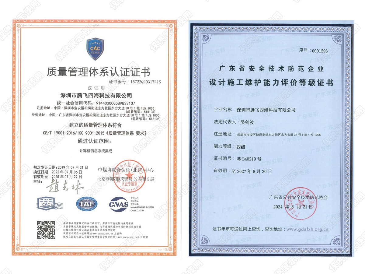 2016年與中國電建合作,協(xié)助中國電建治理深圳茅洲河項(xiàng)目,推動(dòng)了公司的發(fā)展;2017年,獲得了安防設(shè)計(jì)、施工、維修資質(zhì),信息系統(tǒng)集成資質(zhì);2018年,與中建二局合作,專業(yè)度得到更大的提升;2019年,中標(biāo)了京基一百、恒大、兆邦基集團(tuán)等知名品牌企業(yè)的智能化項(xiàng)目,使公司邁上了一個(gè)新的臺階。在2019年,獲得了電子智能化資質(zhì)、ISO9001、ISO 14001、ISO45001 體系認(rèn)證、國家3A企業(yè)信用認(rèn)證、廣東省守合同重信用企業(yè),國家高新技術(shù)企業(yè)。
